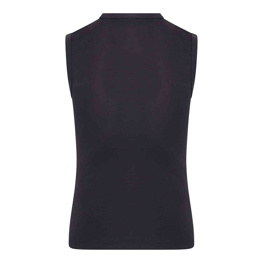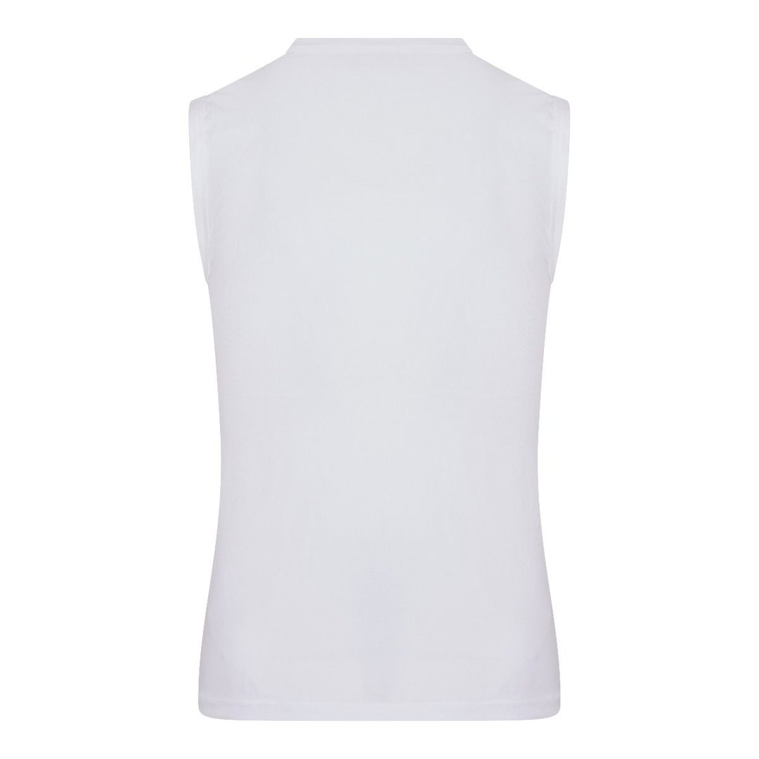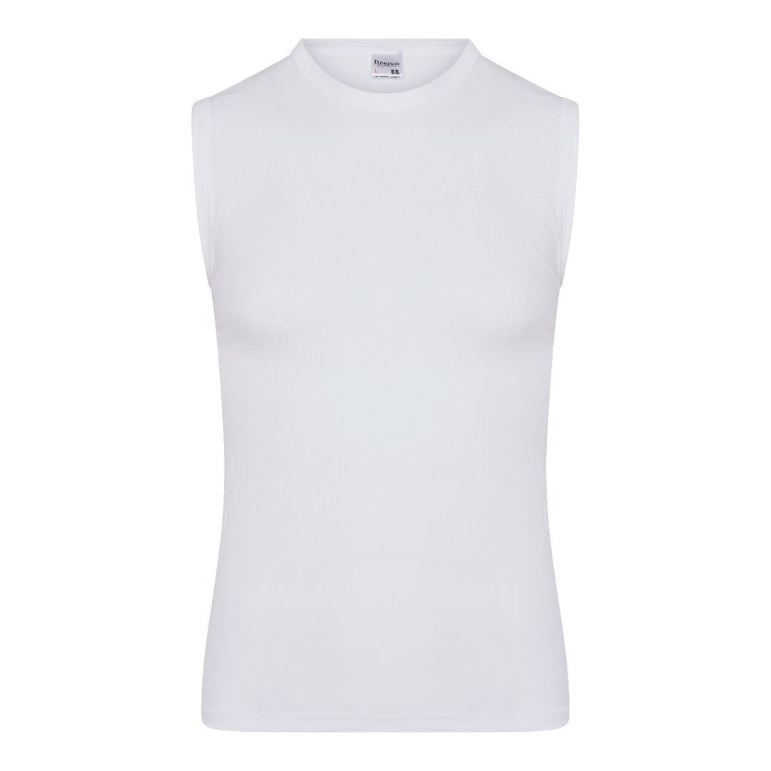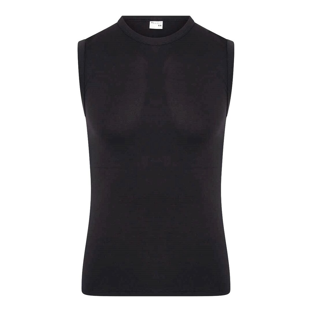 Aansluitende (slimfit) en elastisch mouwloos heren shirt met ronde hals, zonder zijnaden, gemaakt van een zachte microstof (98% Polyamide en 2% Elastomeer). De hals en armsgaten zijn afgezet met een elastisch boord.
